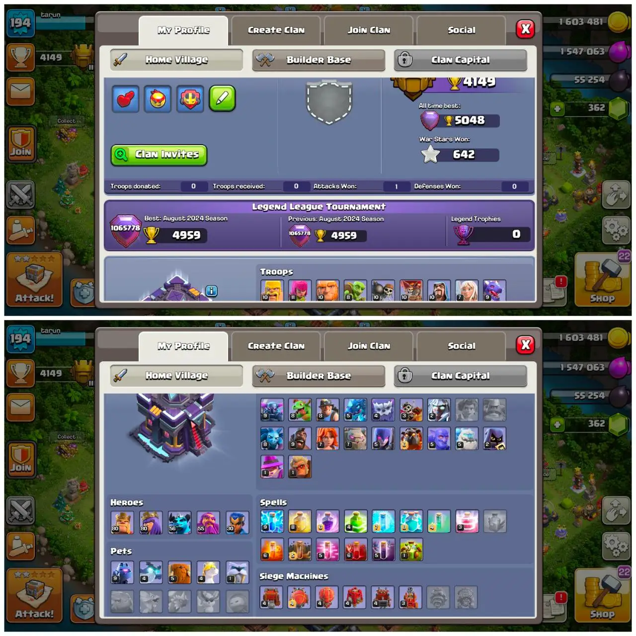 [#449] [COC+BS] 49690 TROPHY | 13 MAX-10 HYPERCHARGED | 144 RARE SKINS | COC TH15 | 80-80-56-55-55-30 HEROES | 2K CWL MEDALS | INSTANT DELIVERY