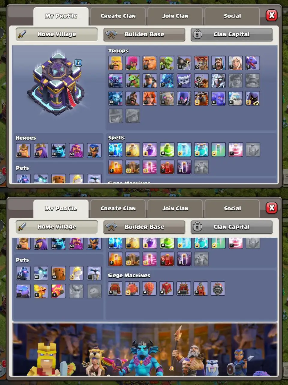 [#222] RAREST TH15 | 4750+ WAR STARS | 81-86-60-58-31 HEROES | 5700+ ATB | 1000 RENAME | TOTAL 9 HEROES | INSTANT DELIVERY