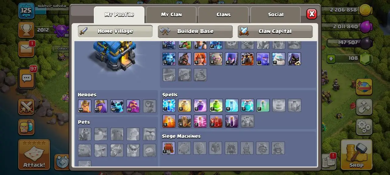 [#775] SEMI-MAX TH12 | 44-47-30-20 HEROES | SOME MAGIC ITEMS | FREE RENAME | INSTANT DELIVERY