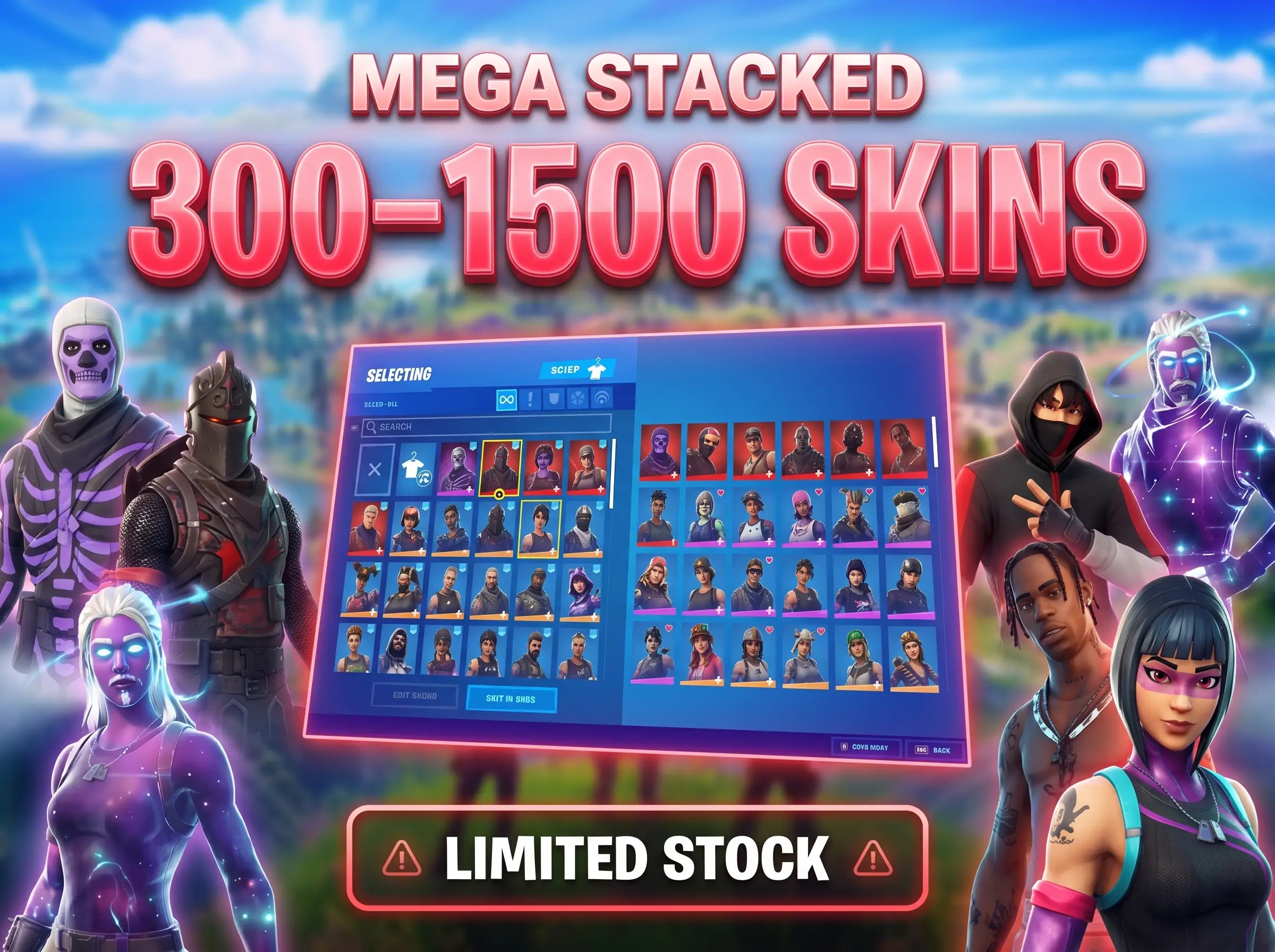 Mega Stacked Fortnite Account | 300 to 1500 Skins