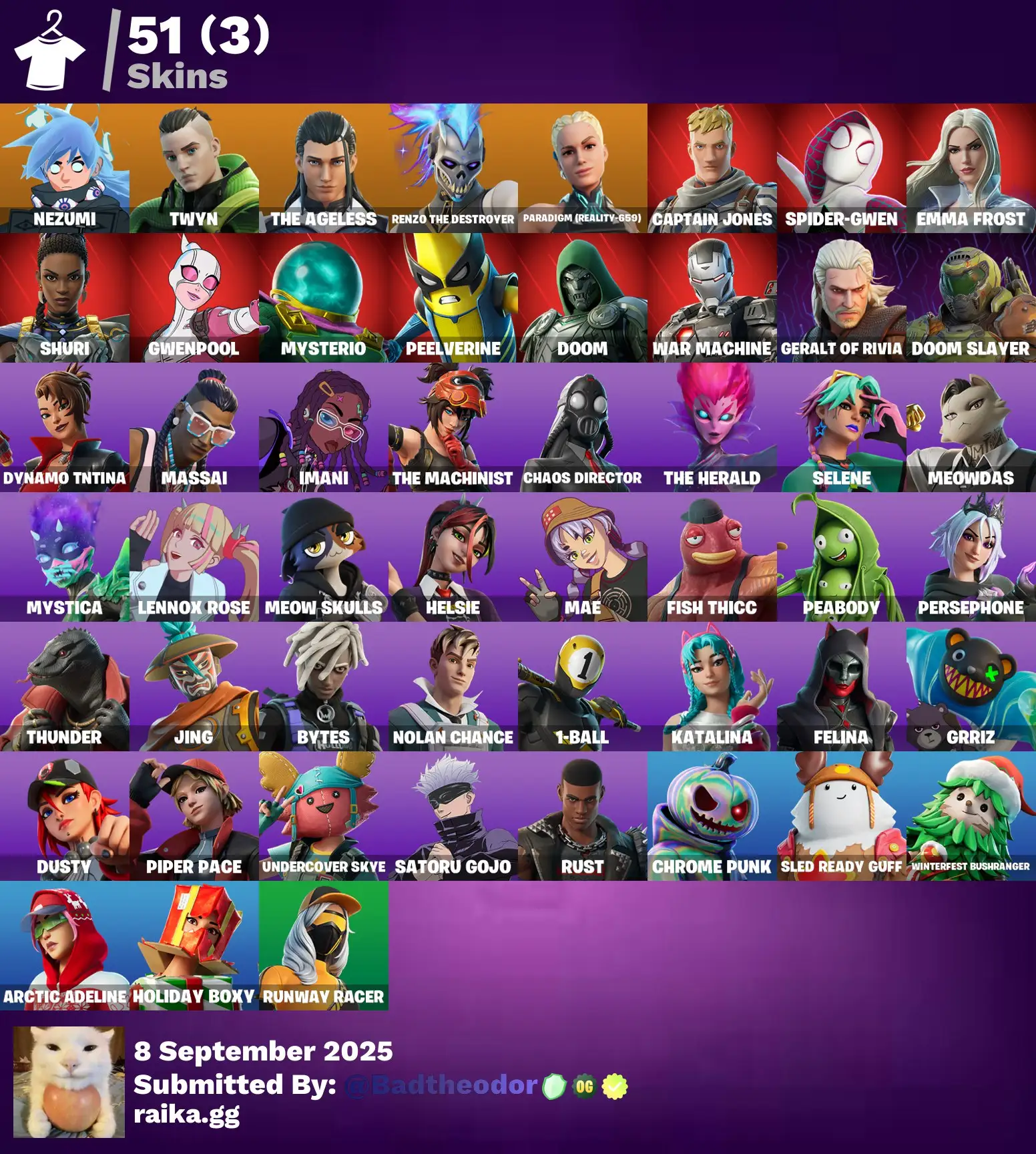 [PC] 51 skins | Nezumi | Twyn | The Ageless | Renzo the Destroyer | Paradigm (Reality-659) | Captain Jones | Spider-Gwen | Emma Frost | Shuri | 500 VB
