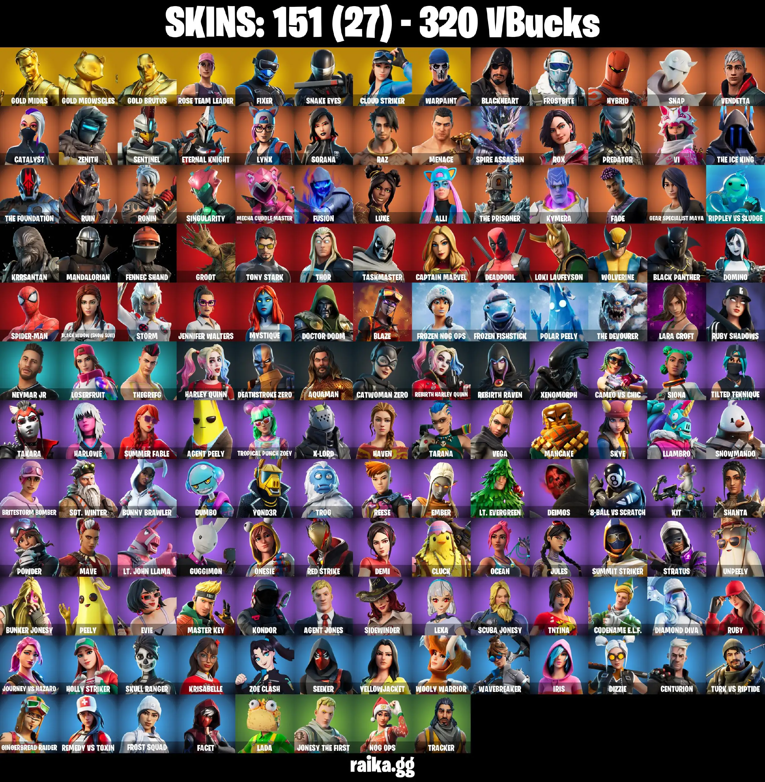 [PC/PSN/XBOX] 151 skins | OG STW | Gold Midas | Gold Meowscles | Gold Brutus | Fixer | Snake Eyes | Cloud Striker | Blackheart | Frostbite