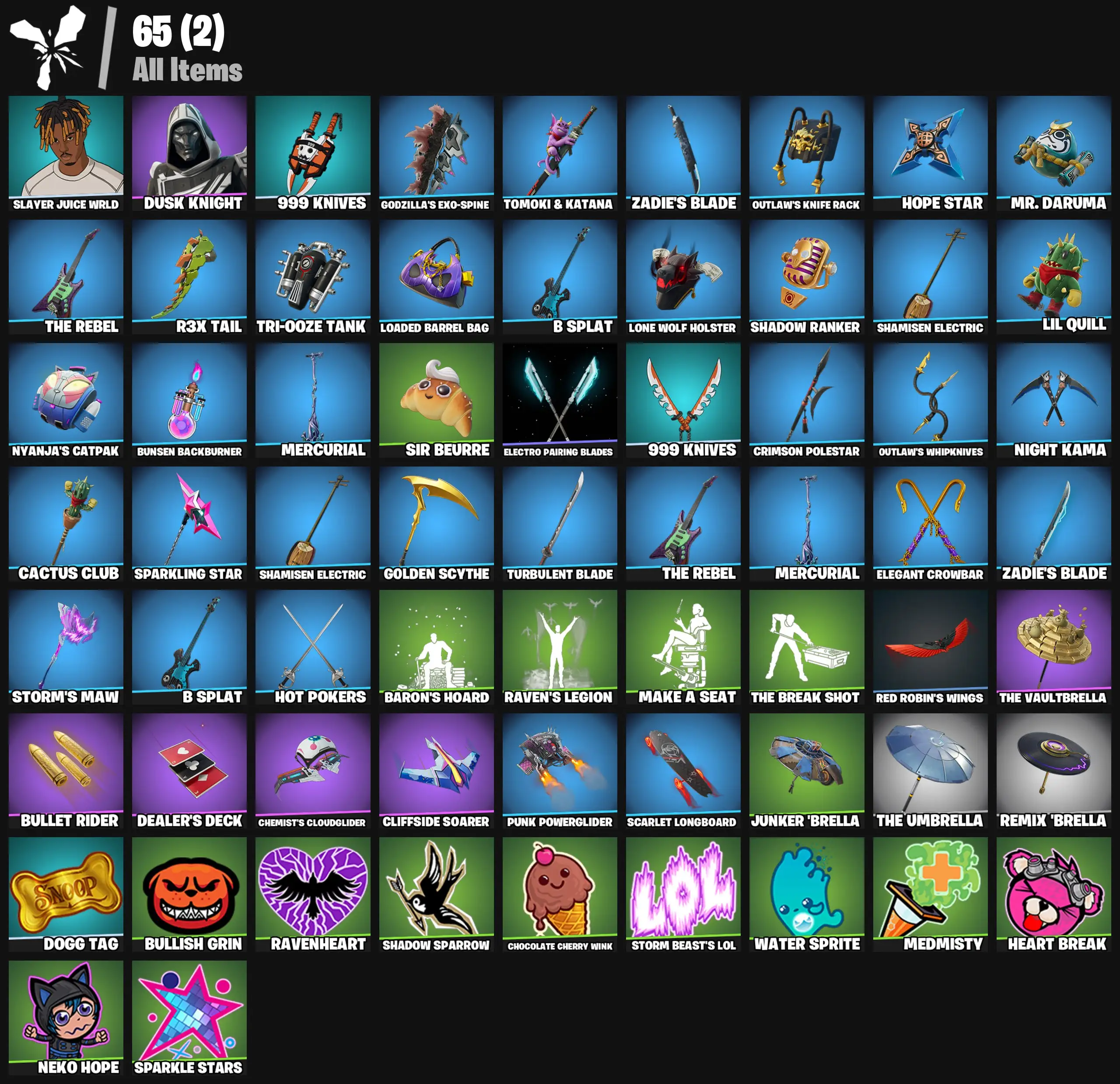 [PC/PSN/XBOX] 2 skins | Slayer Juice WRLD | Blitz Knight | 999 Knives | Godzilla's Exo-Spine | Tomoki & Katana | Zadie's Blade | Outlaw's Knife Rack | 500 VB